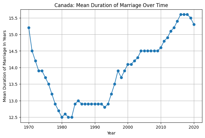 On the other hand, the durability of the marriages Canadians do undertake is definitely recovering from a long-term decline. For some reason, Statistics Canada has no divorce-related data more recent than 2020. But what we do have clearly shows the duration of the average marriage climbing to as high as 15.6 years after decades in the 12 to 13 year range.