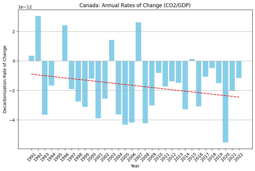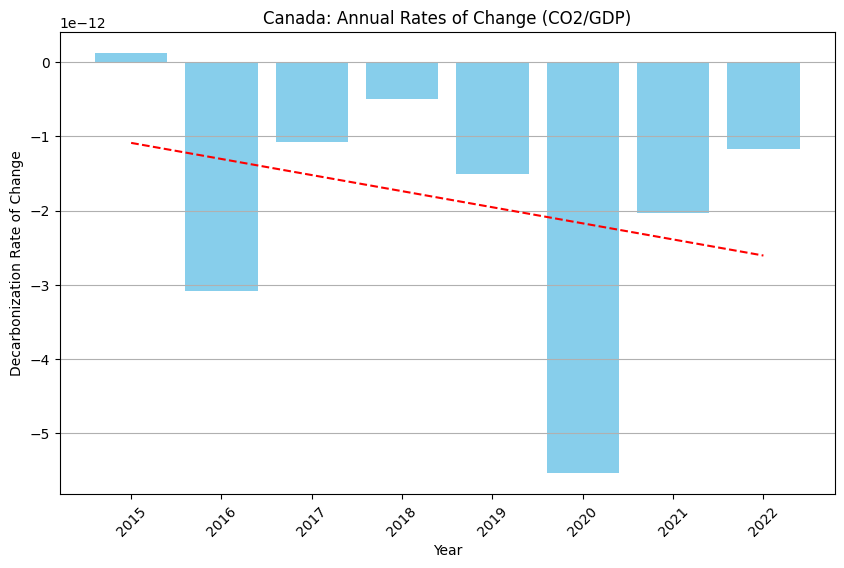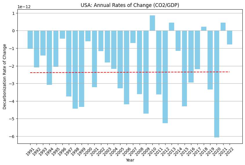 1) “Decarbonization ratio” seems like a confusing term to me. I would stick to Pielke’s usage of decarbonization = the (negative) rate of change in the carbon intensity of the economy (C/GDP) or “a reduction in the ratio of emissions to GDP”.