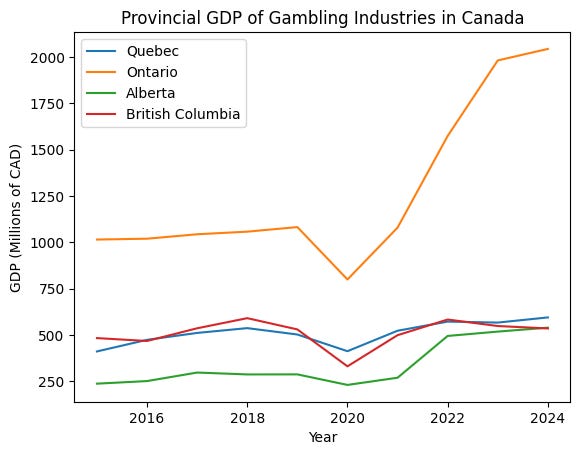 If anything, Alberta has tightened its online gambling laws in recent years. So why are they seeing so much income from the industry? Understanding this might take us somewhere interesting.