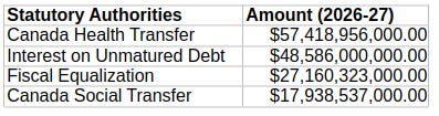 Depending on how you look at it, the four largest federal government spending items will, together, total around $150 billion in the 2026-27 fiscal year. Here they are: