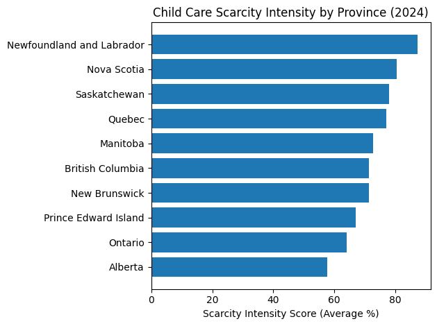 This chart averages the maximum-capacity and waiting-list rates across both the for-profit and non-profit sectors and presents them as a single composite scarcity intensity score: