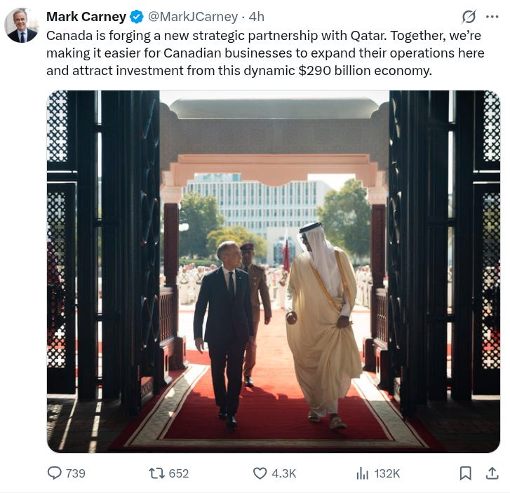 I know that, right now, some of you are involuntarily visualizing Mark Carney tapping away on his smartphone while sitting on the bed in his Doha hotel room with some Netflix movie playing in the background on the TV. Well, remove that awful thought from your filthy mind at once. There is no universe in which Mark Carney composes his own tweets.