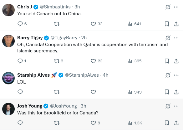 Now it’s true that social media platforms are notoriously negative places. It would be unrealistic for high-profile politicians to think they were going to enjoy an easy time of it. But you’d think an account like Carney’s with a half million followers would attract some support. Anything.