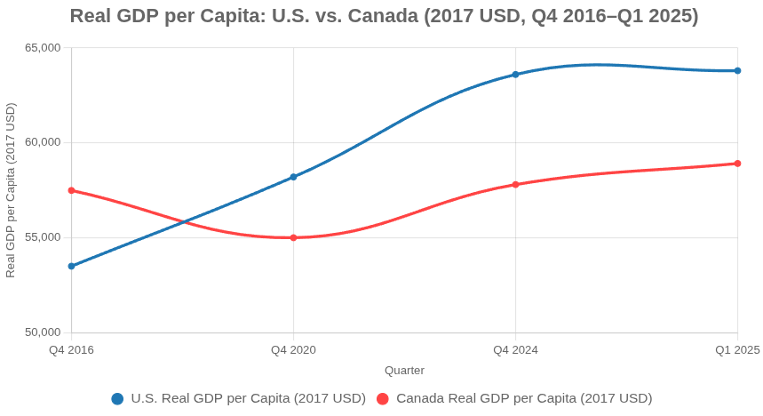 Labour productivity in Canada has been weak for years - far lower than in the U.S. - and is headed in the wrong direction. Overly complex regulations and slow permitting take some of the blame for poor investment numbers. Programs like the Canada Innovation Corporation and R&D tax credits exist, but haven’t made much of a difference. The OECD cites Canada’s low public and private R&D spending (1.7% of GDP vs. 2.7% in the U.S.) as a barrier. And government policies have also so far failed to address interprovincial trade barriers, reducing efficiency.